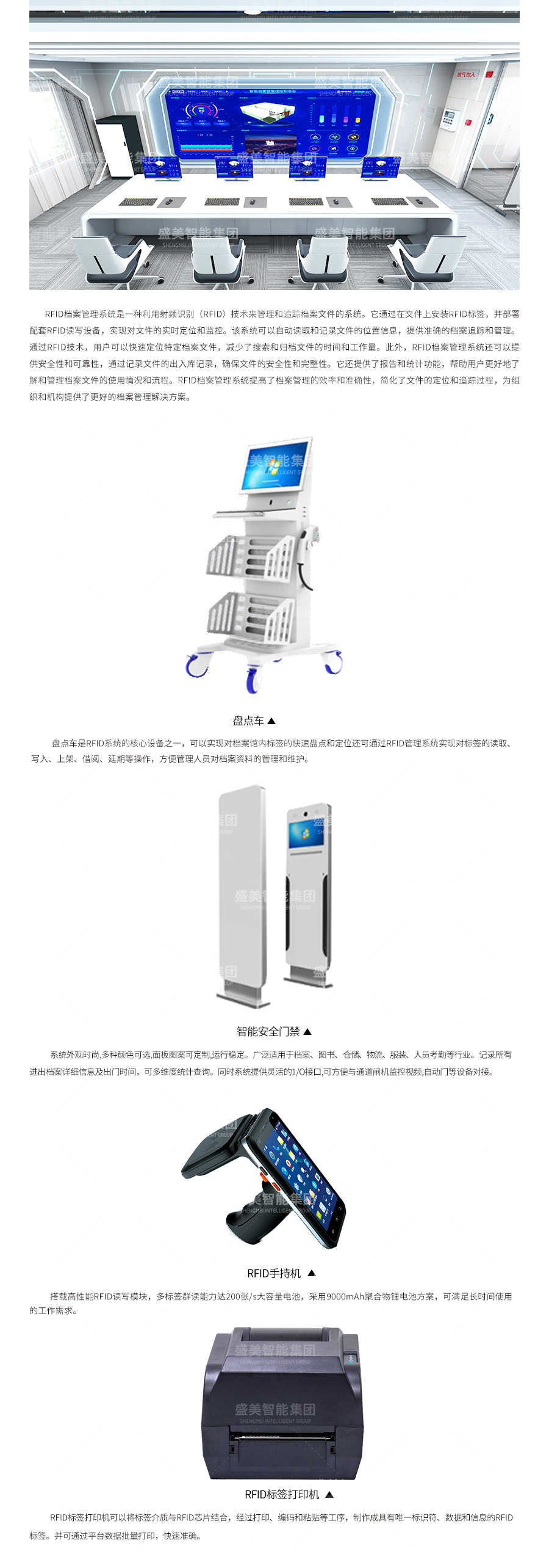 本系統從檔案資料日常的存儲、查詢、借閱、歸還、防盜等具體業務出發,對檔案流通的各個環節進行數據采集的同時,通過在系統中構建檔案柜,對檔案館內資料實現全面可視化查詢管理,并對檔案材料非授權帶出、非法查閱存放超期、檔案室環境異常等狀況提供語音聲光提示報警、圖像抓拍等各種手段,另外此系統可與檔案管理系統、智能密集架系統、溫濕度控制系統、監控系統、安防報警系統、消防系統等子系統無縫對接,實現檔案業務辦理及管理的數字化、自動化、智能化和高效化。